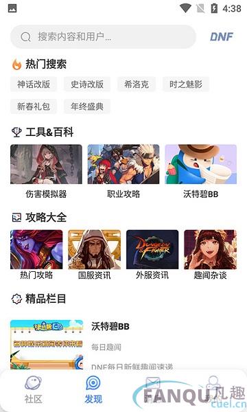 colg玩家社区客户端是一款专业DNF游戏社区,里面也有其他热门游戏交流圈,但总体是以DNF为中心,这里有最新、最全面、最专业的游戏攻略,当你还搞不懂游戏要怎么玩的时候,不知道该如何最大化提高角色伤害的时候,就可以上这款app问问别人,轻松解决你的一切烦恼。