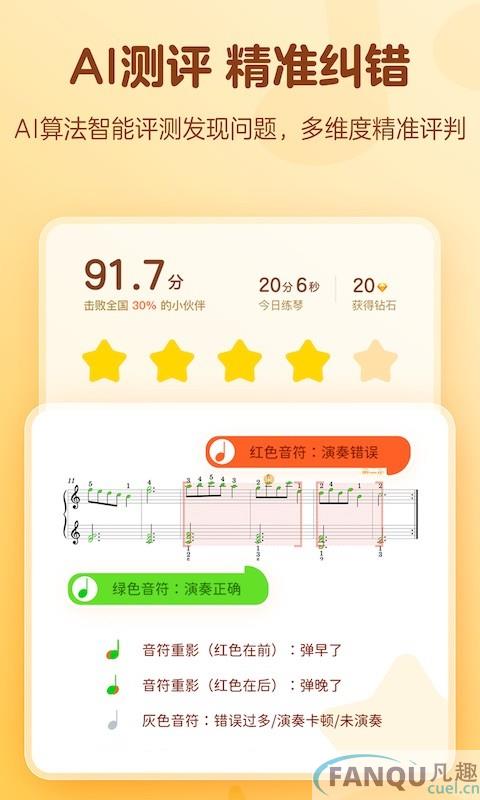2、可以对于用户的弹奏结果进行分析,熟练的去练习,可以增加熟练度;