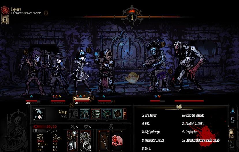 当压力达到200时,角色甚至会发疯和死亡,一些探索因素和一些怪物的技能会增加压力。比如能增加压力的邪教女巫和骷髅贵族,一次一个吸魂迷惑酒杯的技能是压不住的,所以我一般先打。