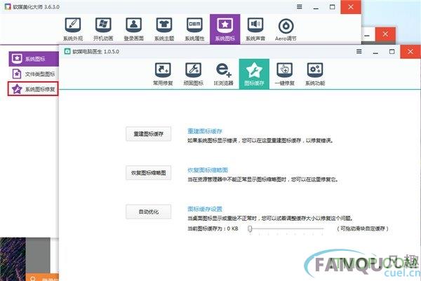 如果图标出现问题,您还可以点击“系统图标修复”标签,此时弹出“电脑医生”的“图标缓存”页面。在这里您可以修复图标显示错误