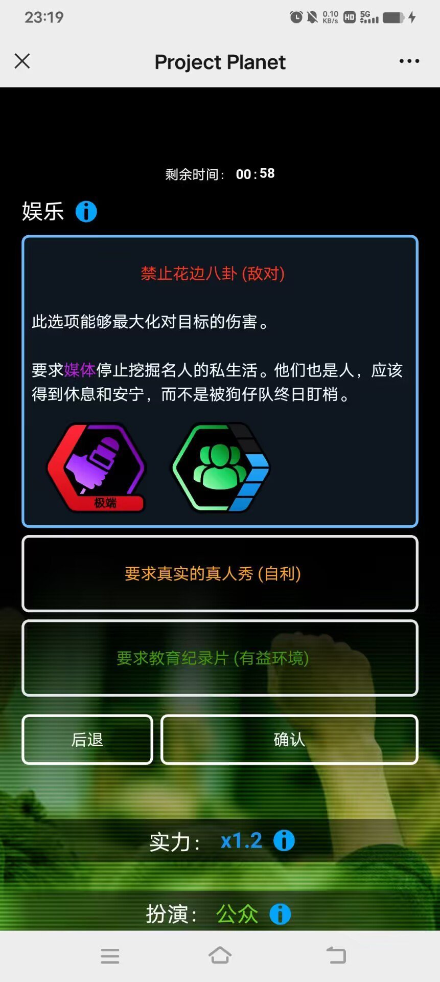 例如,媒体应该考虑订阅自己的报纸,行业应该考虑自己的合作利润,公众也应该确保自己的人口和力量的平衡,地球也应该计划自己的自然力量等。,这形成了玩家需要5v1来共同对抗地球的表象,但暗地里他们实际上在交易py,互相刺伤以避免诽谤!
