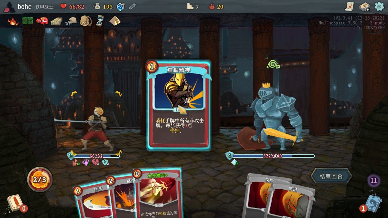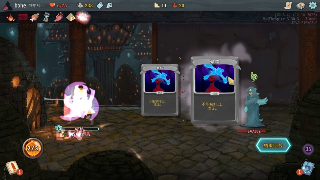 我们在不断地开始护甲和抽卡,这实际上已经完成了无限。但是因为我们没有伤害,所以我们不能打败敌人。这是广义的无穷大:你可以无限期地抽牌和使用牌,但你无法成功击败敌人。